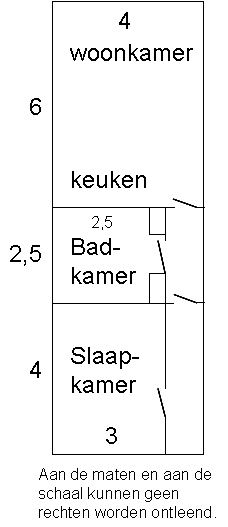 De indeling is als volgt: - Gang met plavuizen; - Slaapkamer met parket-laminaat en inbouwkast; - Nieuwe, moderne badkamer met douche cabine, vaste wastafel en toilet. - Bergruimten: in hal en in badkamer; - Nieuwe keuken met elektrische, keramische kookplaat; - Woonkamer met parket-laminaat; - Eigen kelderruimte onderin het appartementencomplex. - Energiezuinige HR-CV-ketel; - Eigen balkon (3,0 x 1,2 m) |